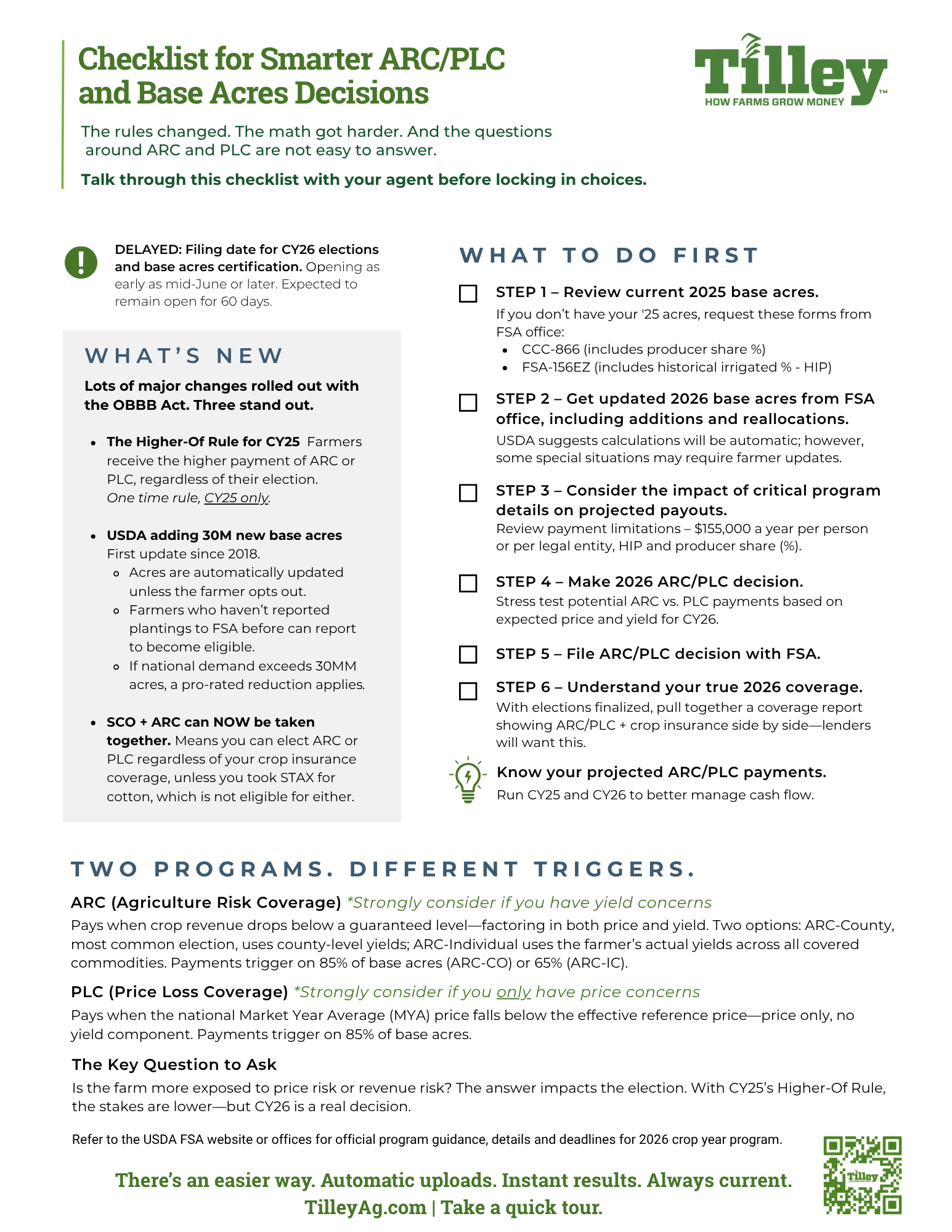Checklist for Smarter ARC/PLC and Base Acres Decisions Apr 23 Written By Hemline Theory The list we wished we’d had. Delivered here. The rules have changed. The math got harder. And the questions around ARC and PLC are not easy to answer. Click image to download PDF. Hemline Theory https://hemlinetheory.com